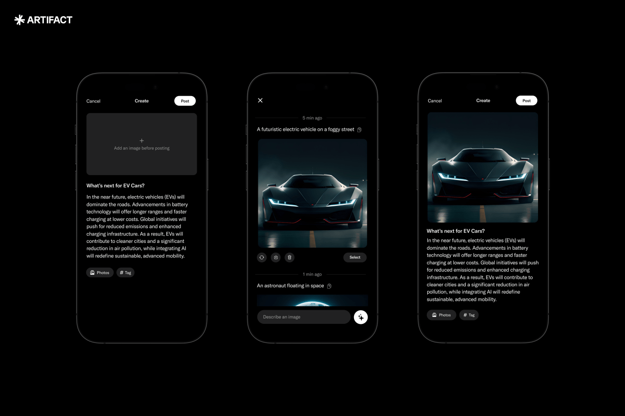 The introduction of generative AI for imagery marks a significant milestone for Artifact. With this feature, users can easily transform text-based posts into visually captivating content without needing external tools. By simply tapping the “+” icon during the creation phase and selecting “create with AI,” users can conjure images that perfectly complement their updates.