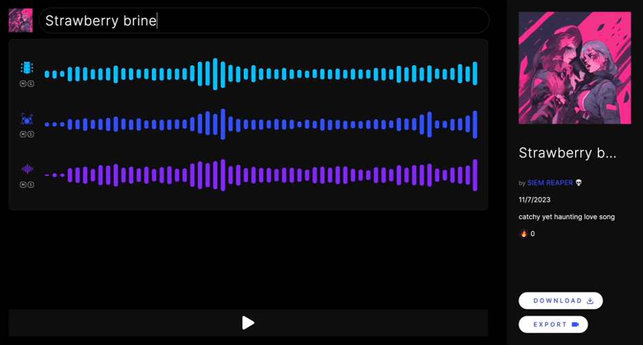 Triniti also includes an AI sample generator that allows users to input a desired genre or vibe, such as “catchy yet haunting love song.” The platform then produces multiple audio tracks, paired with album art to inspire creativity.